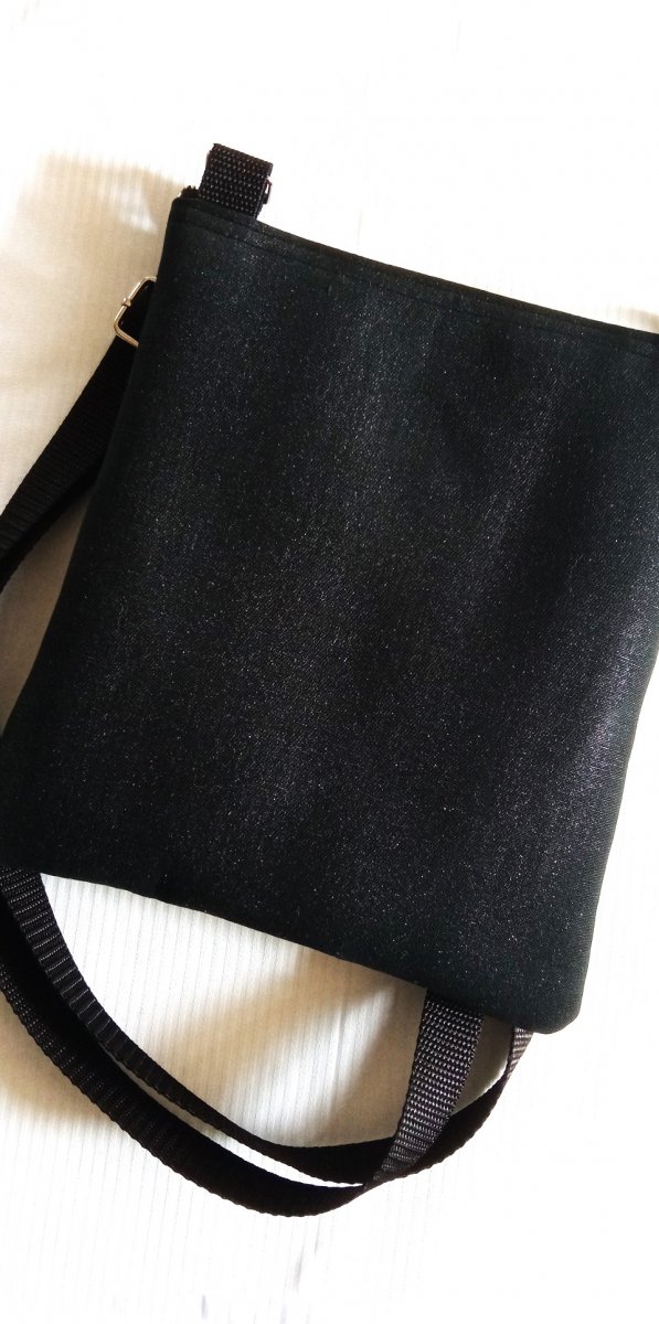 crossbody je ručně šitá z pevné černé 100%bavlny,vyztužená,uvnitř bavlněná podšívka,zapínání na zip,popruh černý a nastavitelný,