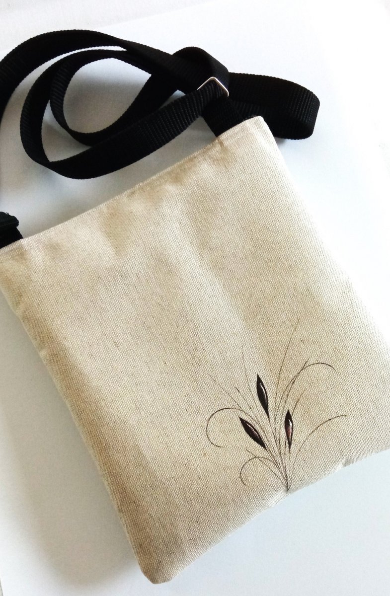 crossbody je ručně šitá z pevné režné bavlny,vyztužená,uvnitř bavlněná podšívka,zapínání na zip,popruh černý a nastavitelný,