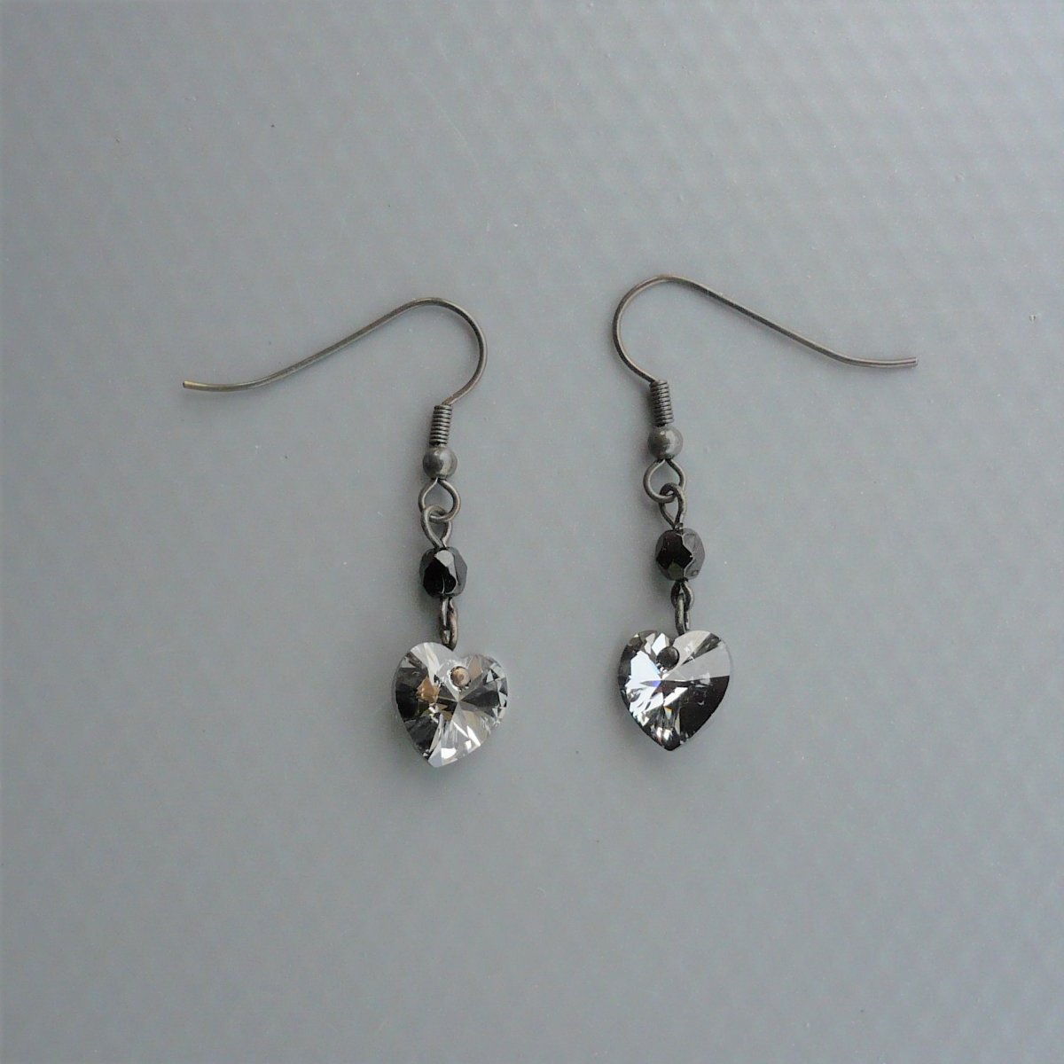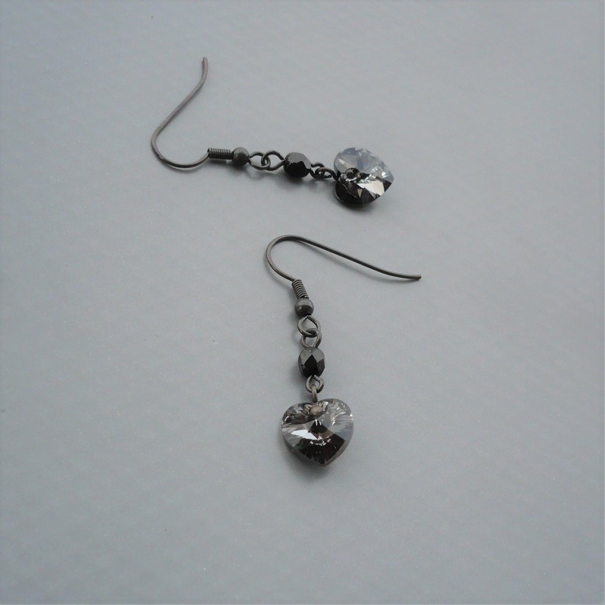 Malé precizně vybroušené černo-stříbrné Swarovski srdíčko v odstínu crystal silver night a černý broušený skleněný korálek jsou zavěšeny rovnou na zapínání, tzv. afroháčku - plastovou zarážku proti vypadnutí dodávám společně s náušnicemi.