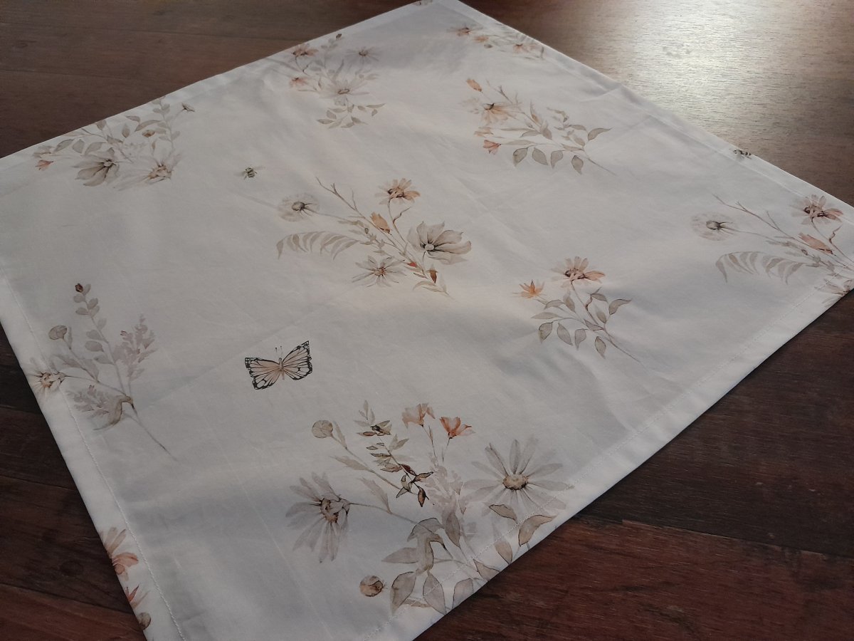 Nabízím středový čtvercový ubrus šitý z krásné látky s jemným vzorkem.