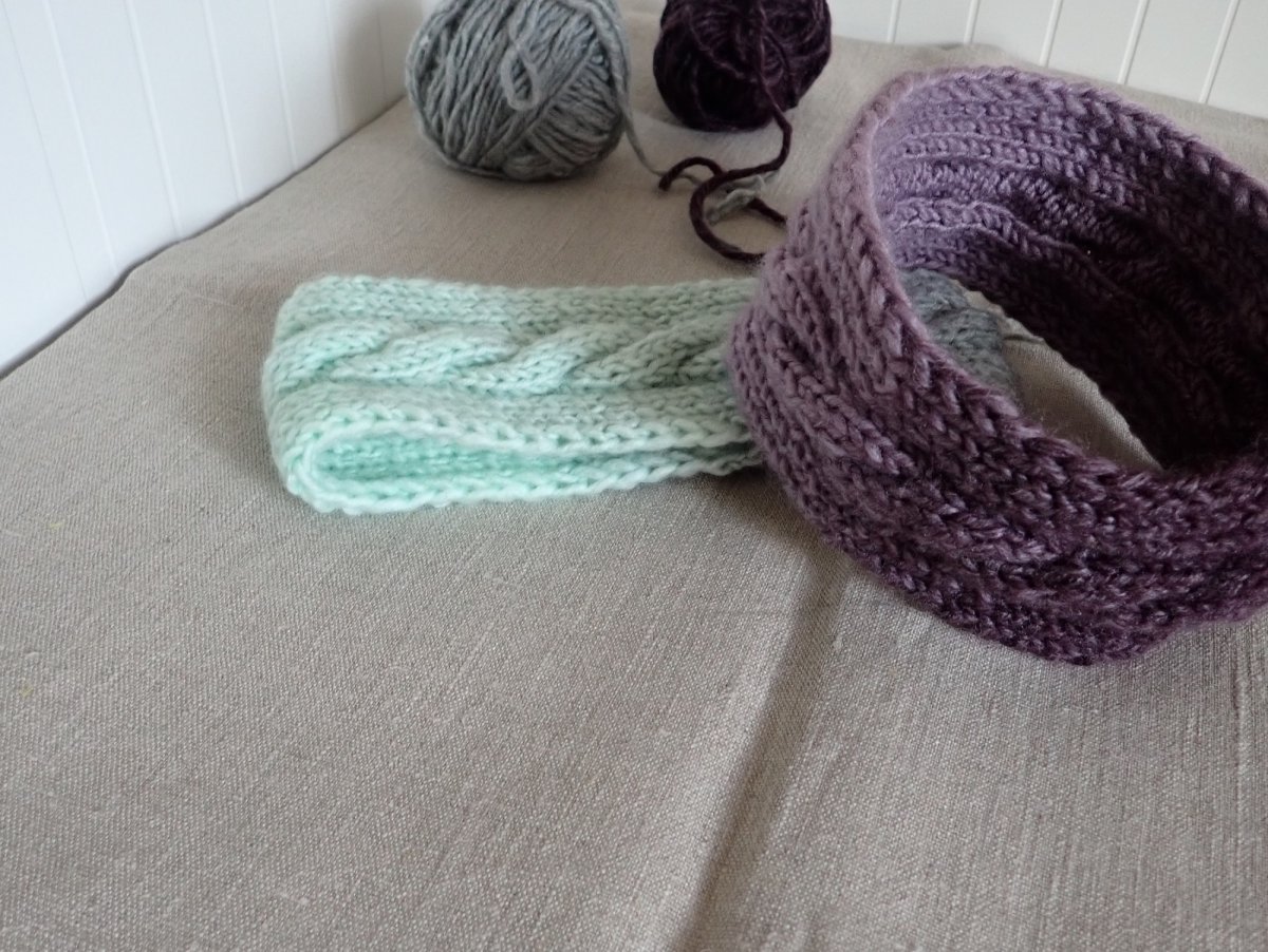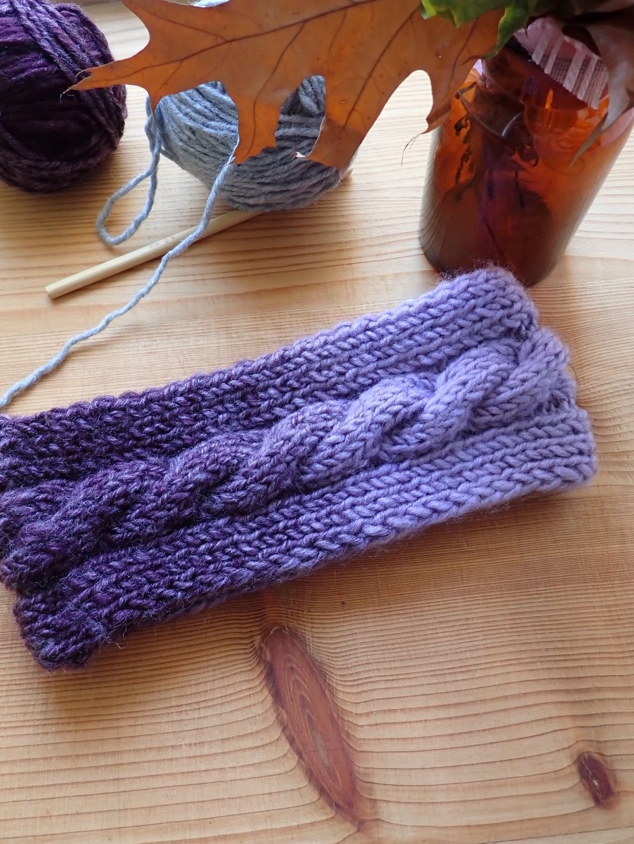 Ručně pletená melírovaná dámská čelenka s copánkem je určená na hlavičku o velikosti 54-56. Široká je 8 cm.