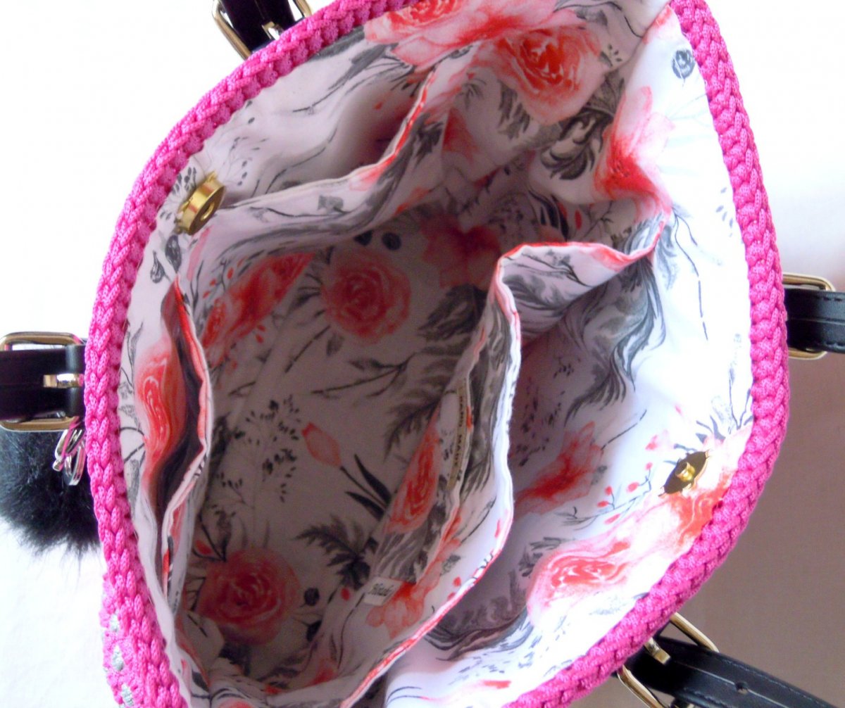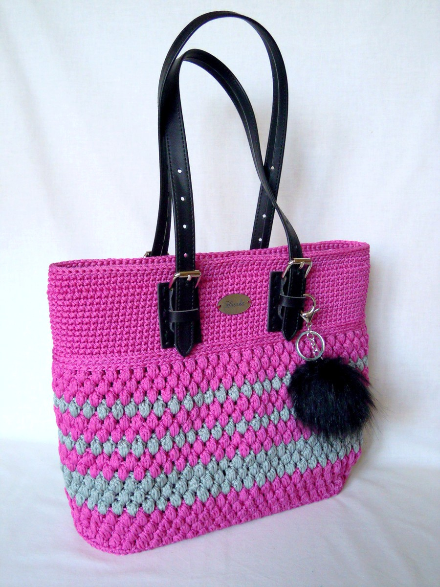 Tato velká kabelka je háčkovaná z tureckých šňůr.