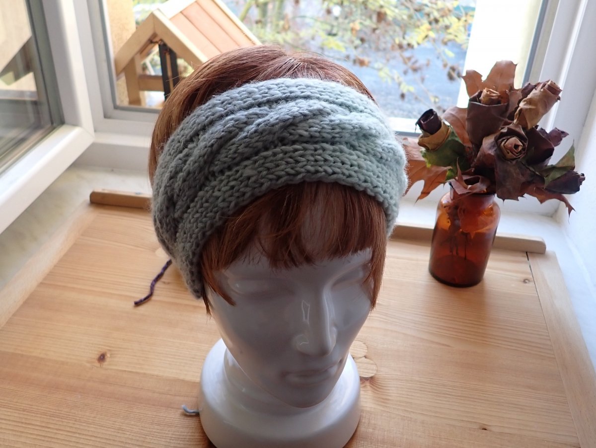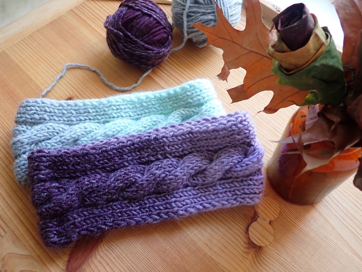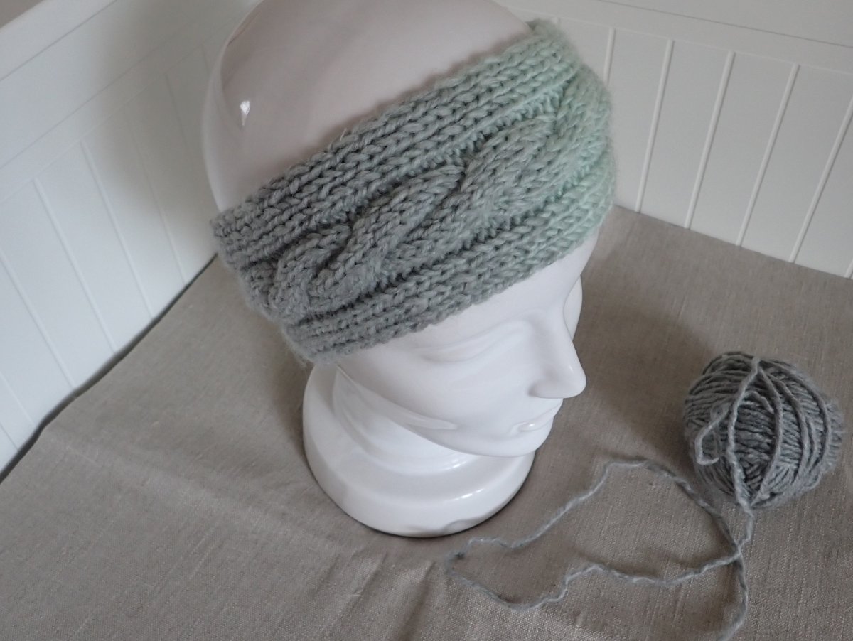 Ručně pletená melírovaná dámská čelenka s copánkem je určená na hlavičku o velikosti 54-56. Široká je 8 cm.