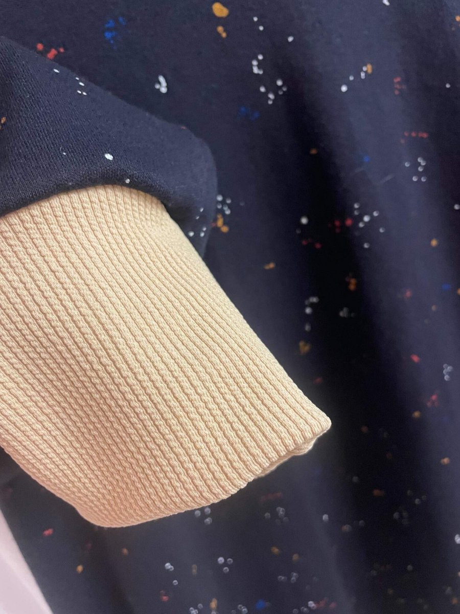 Tmavě modrý podklad s jemným vzorkem dodává mikině šmrnc, který se hodí jak do kavárny, tak na procházku historickými uličkami.