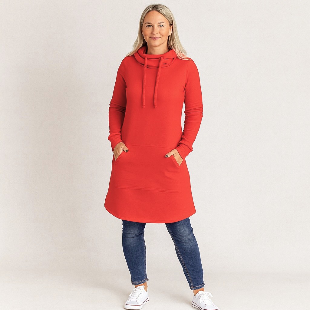 Naše červená šatotunika je přesně to, co váš šatník potřebuje. Díky promyšlenému střihu a kvalitnímu materiálu se v ní budete cítit skvěle v práci, ve městě i na procházce.