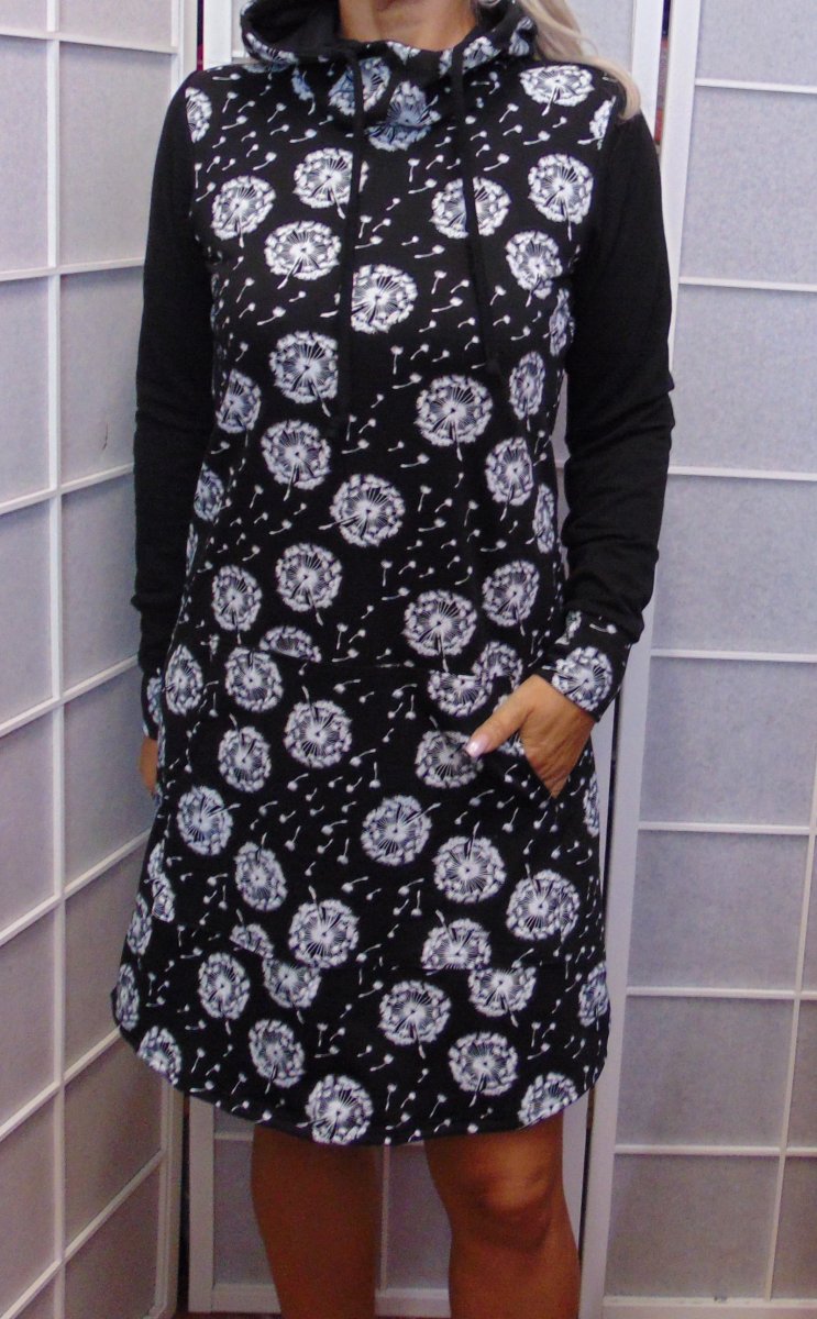 Dámská mikino-tunika s kapucí - chmýří na černé (teplákovina)