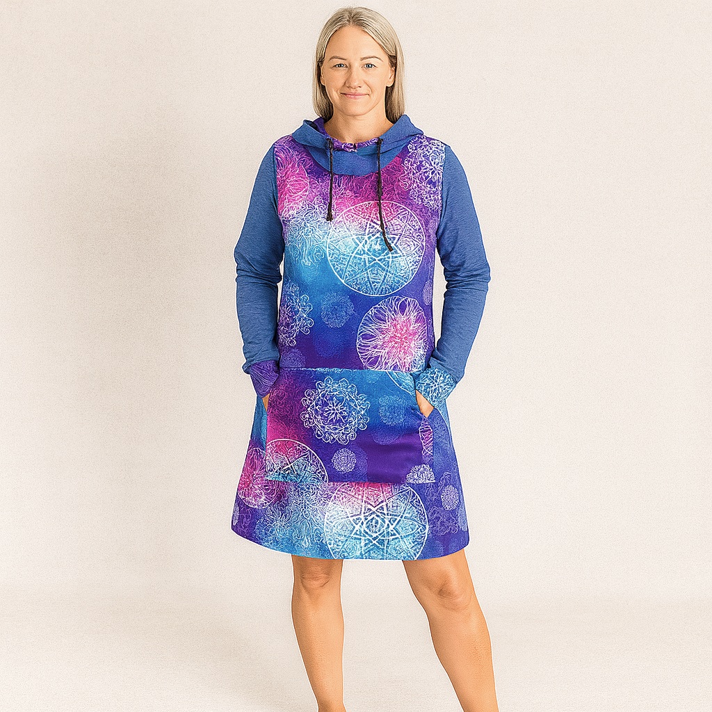 Hledáte kousek, který v sobě spojuje maximální pohodlí a nepřehlédnutelný design? Naše šatotunika s bohatým mandalovým vzorem a kontrastními tmavě modrými rukávy je přesně to, co váš šatník potřebuje. Díky promyšlenému střihu a kvalitnímu materiálu se v ní budete cítit skvěle v práci, ve městě i na procházce.