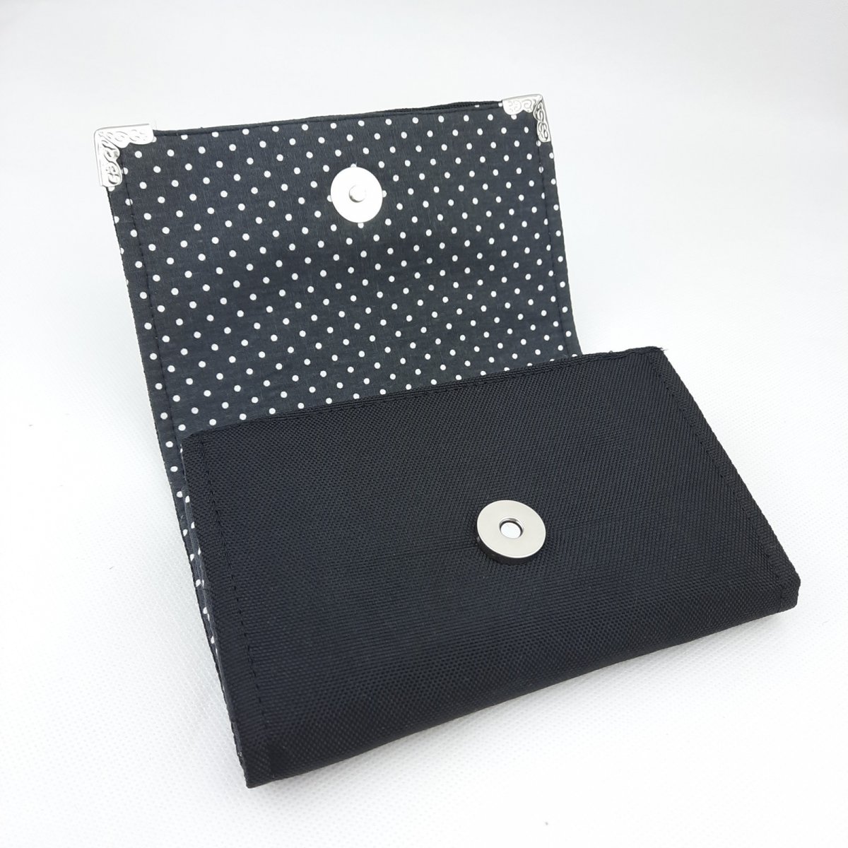 Peňaženka je vyrobená z vodeodolného, umývateľného materiálu, zapína sa na magnetku, má 8 priehradiek na kreditné karty a iné doklady, 1 zazipsovateľnú kapsičku na mince a 2 priehradky na bankovky. Peňaženka má aj jednu skrytú priehradku na bankovky, ktorú oceníte hlavne pri platení v radoch pri pokladni. Jej hlavnou úlohou je skryť peniažky pred zvedavými zrakmi ľudí okolo Vás. Rohy peňaženky sú spevnené a ozdobené kovovými prvkami. Celá peňaženka je starostlivo vystužená, aby bola pevná a dlho slúžila svojmu účelu.
