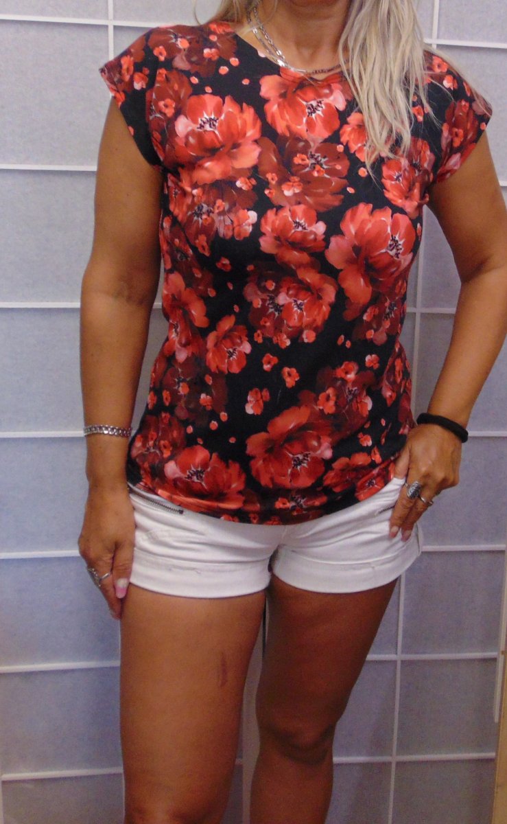 Styl a kombinace: Díky pestrému vzoru vypadá tričko skvěle k jednoduchým kouskům – vyzkoušejte ho s džínovými šortkami, bílými kalhotami nebo jednobarevnou sukní.