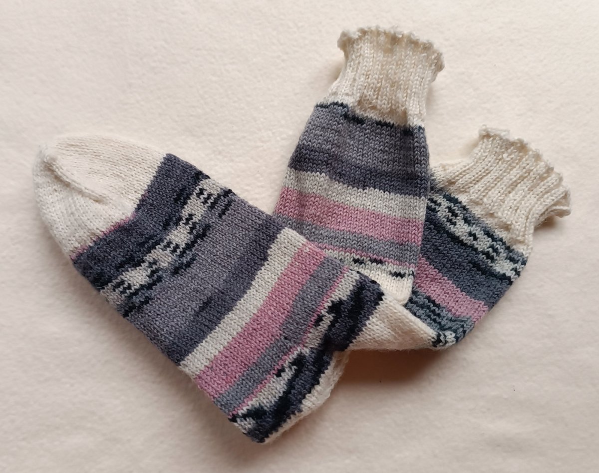 Ponožky se nijak nevytahují ani nesrážejí, je možné je prát v pračce na 30°.