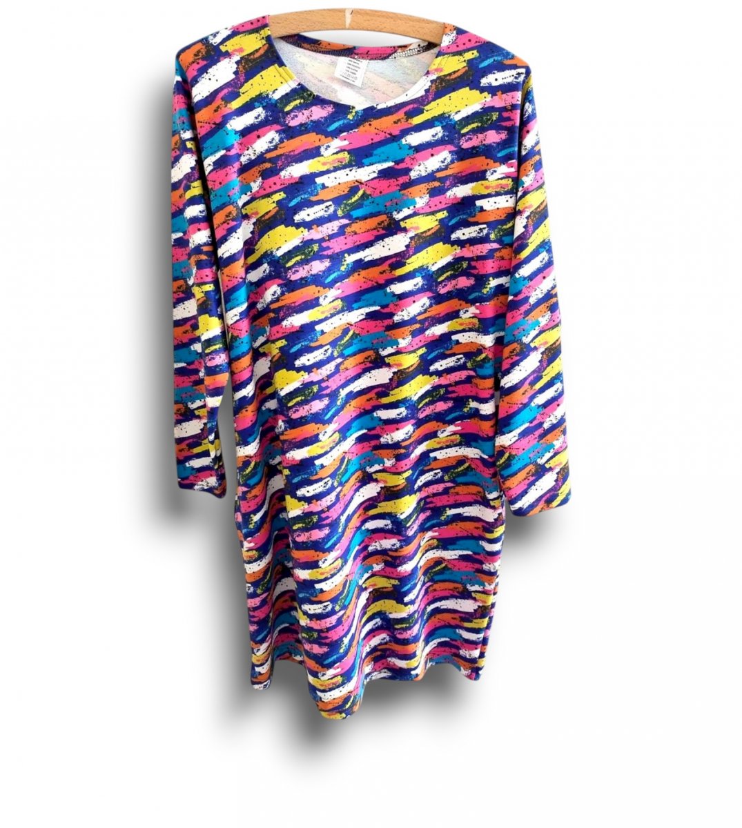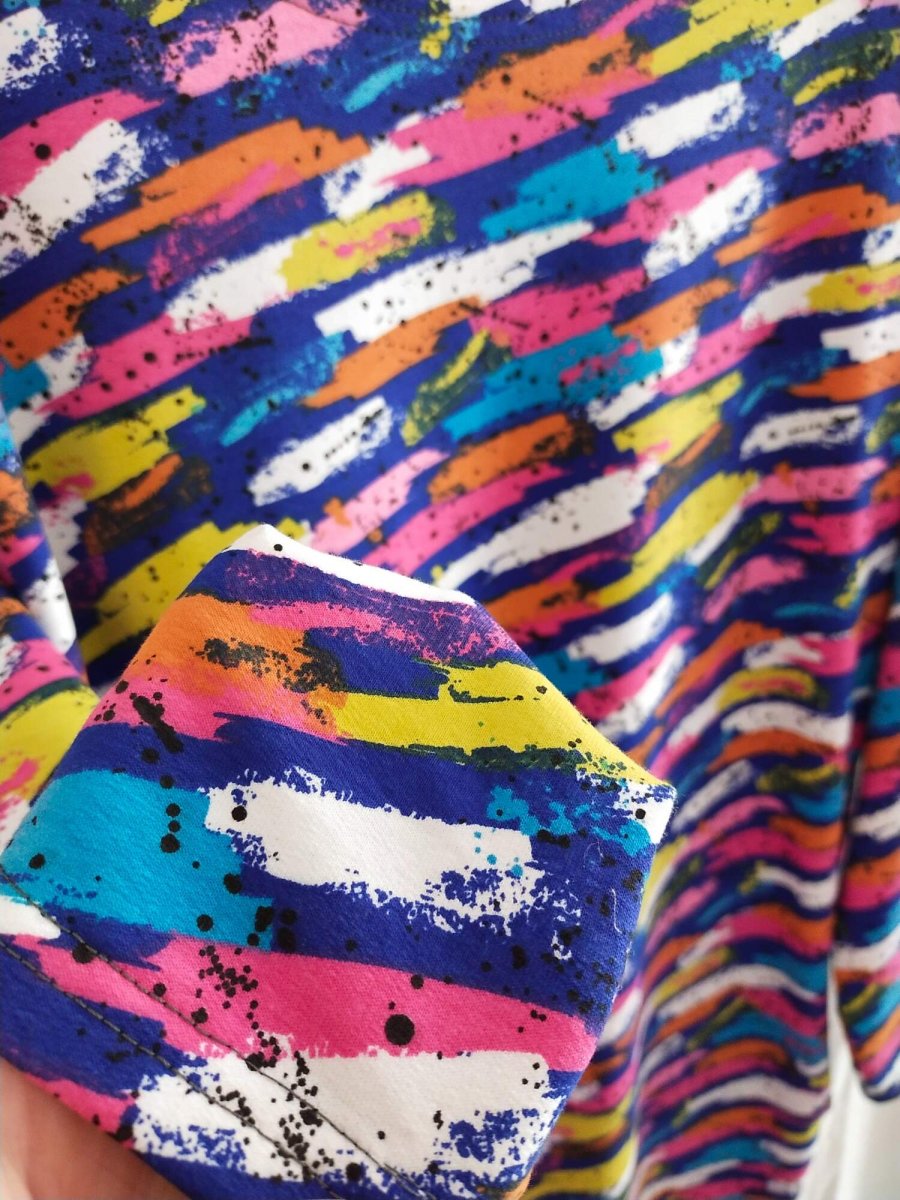 Tyto šaty z měkké bavlněné teplákoviny jsou jako stvořené pro pohodlí bez kompromisů ve stylu. Jejich hravý barevný vzor rozzáří každou náladu, zatímco praktické kapsy dodávají šmrnc i funkčnost – a pokud je nepotřebujete, lze je snadno oddělat.