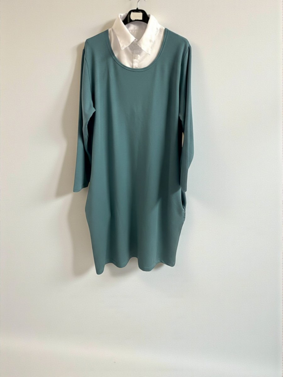 Objevte kouzlo univerzálnosti a pohodlí v jednom kousku! Tyto bavlněné šaty v elegantní šedozelenkavé barvě jsou nepostradatelným doplňkem vašeho šatníku.