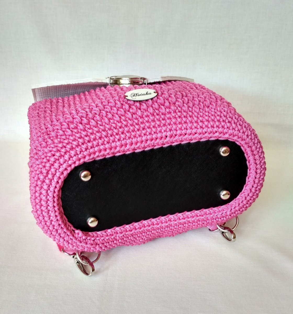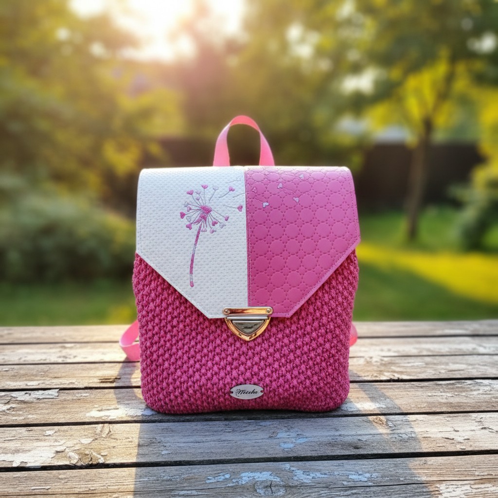 Batůžek je vyrobený z polypropylenových šňůr a je doplněný krásnou