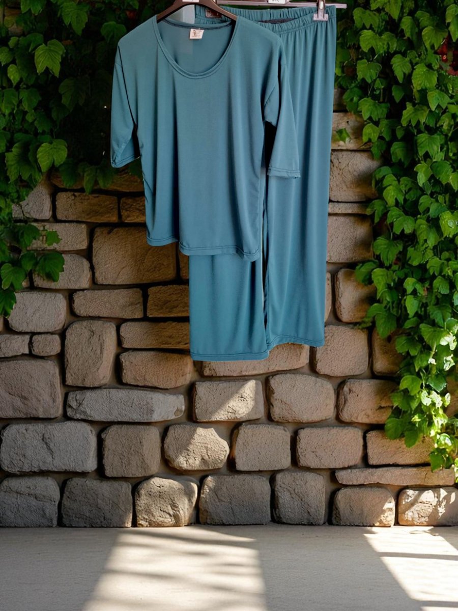 Letní komplet z jemné viskózy – pohodlí v barvě oceánu