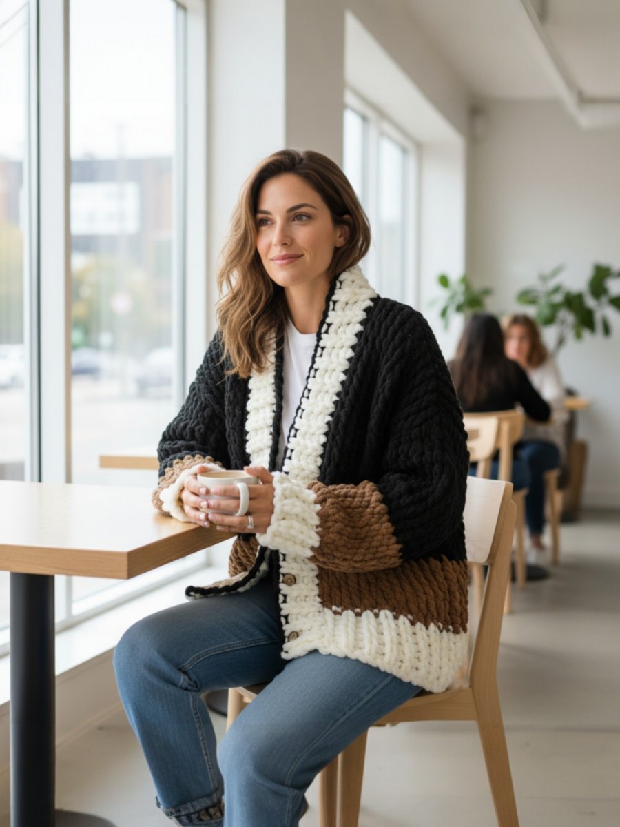 Zamilujte se do tohoto ručně pleteného svetru, který je jako objetí podzimního dne.