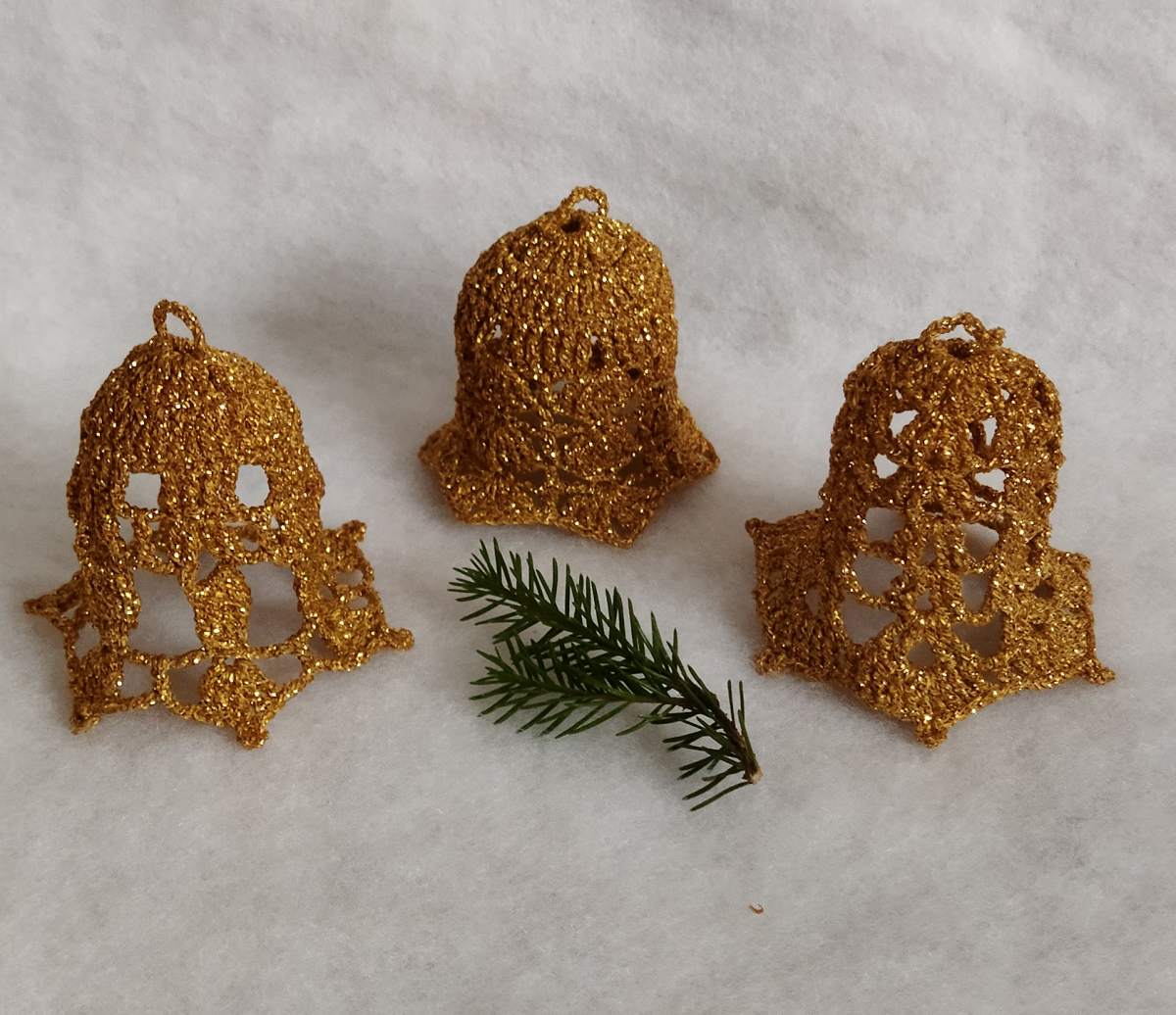 Zvonky jsou uháčkovány z vysoce kvalitní metalizované zlaté efektní příze německé výroby. Jsou pečlivě naškrobeny, aby krásně držely tvar. Výška zvonků je cca 6cm. Skvěle se hodí jako ozdoba na vánoční stromeček, věnec nebo jako přízdoba k dárkům. Nebo ho můžeme volně postavit na vánoční stůl nebo okno. Fantazii se meze nekladou.