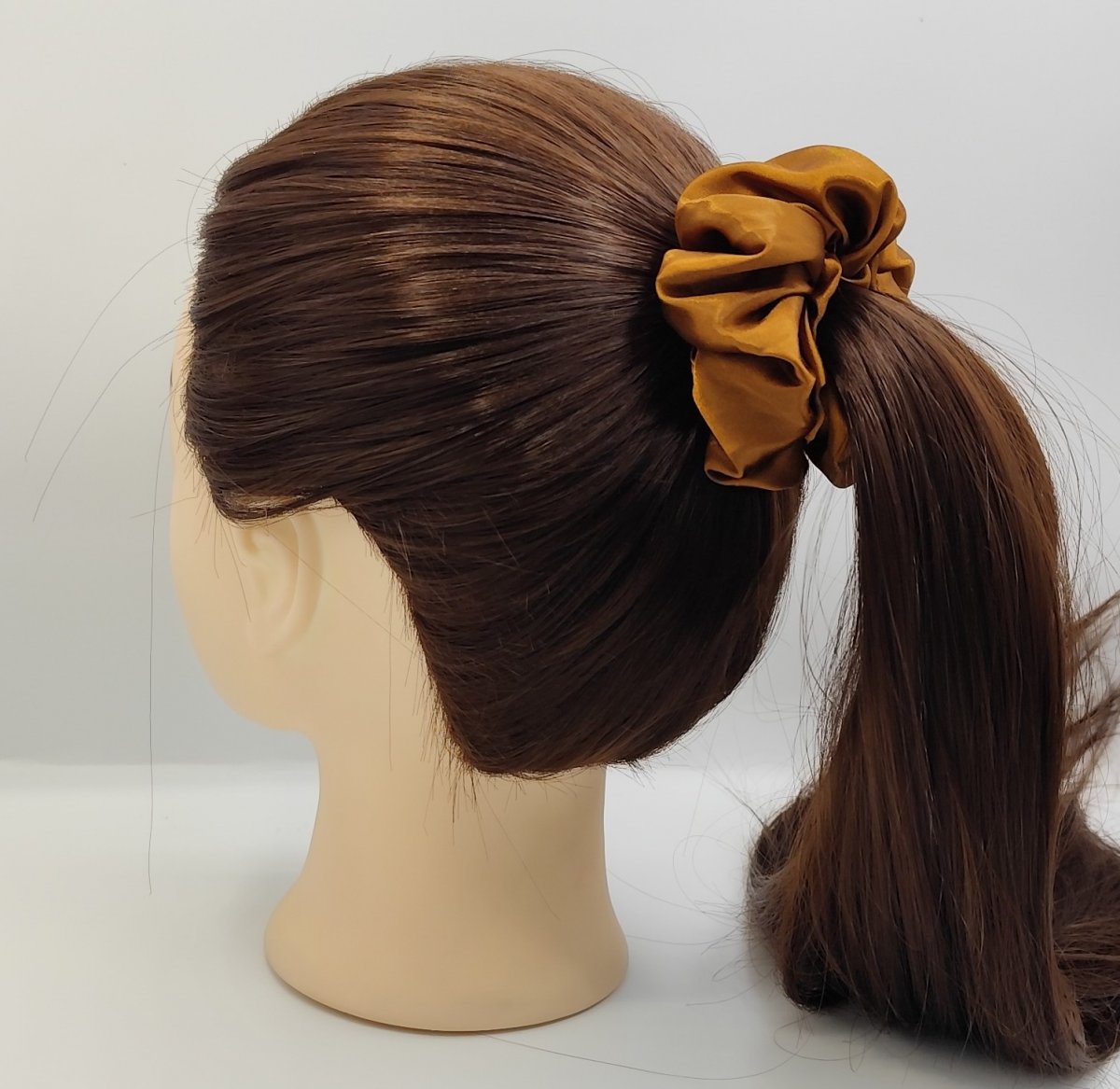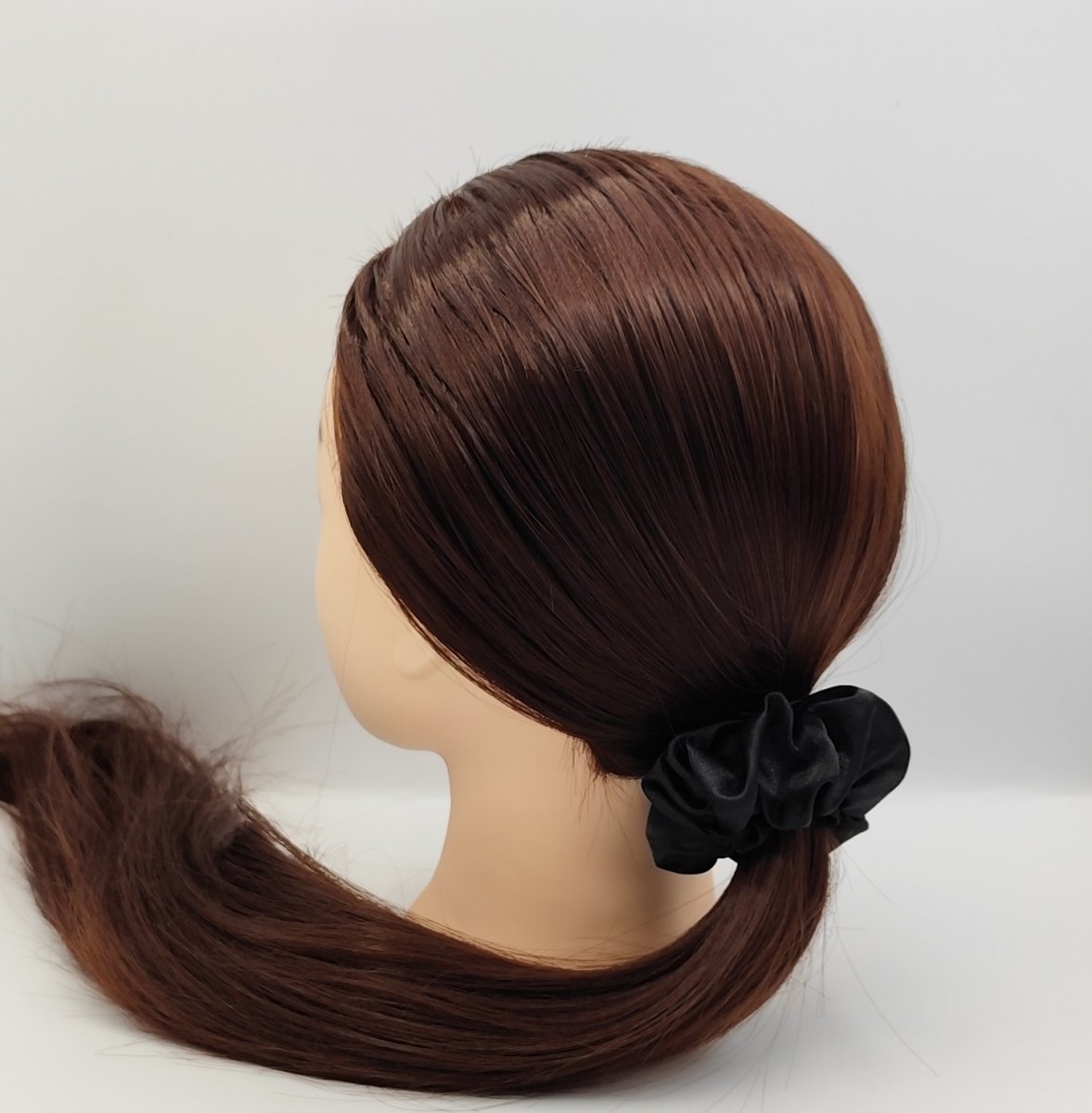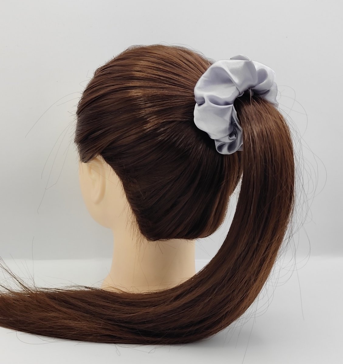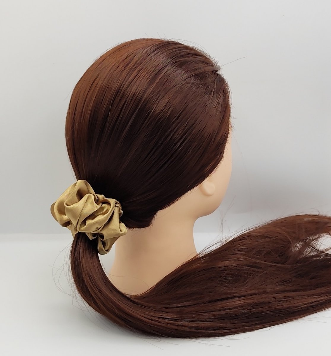 4x saténovou scrunchie gumičku velikost L - v klidovém stavu průměr 10 cm - šířka saténové látky 5 cm, uvnitř se silnou a pružnou gumou.