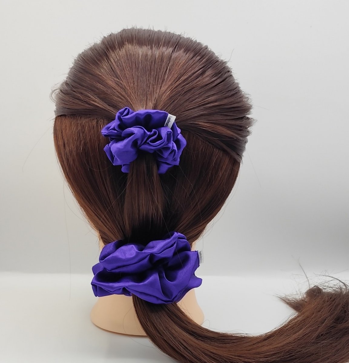 Dárková sada saténových scrunchies gumiček je nakombinovaná ve fialových barvách.