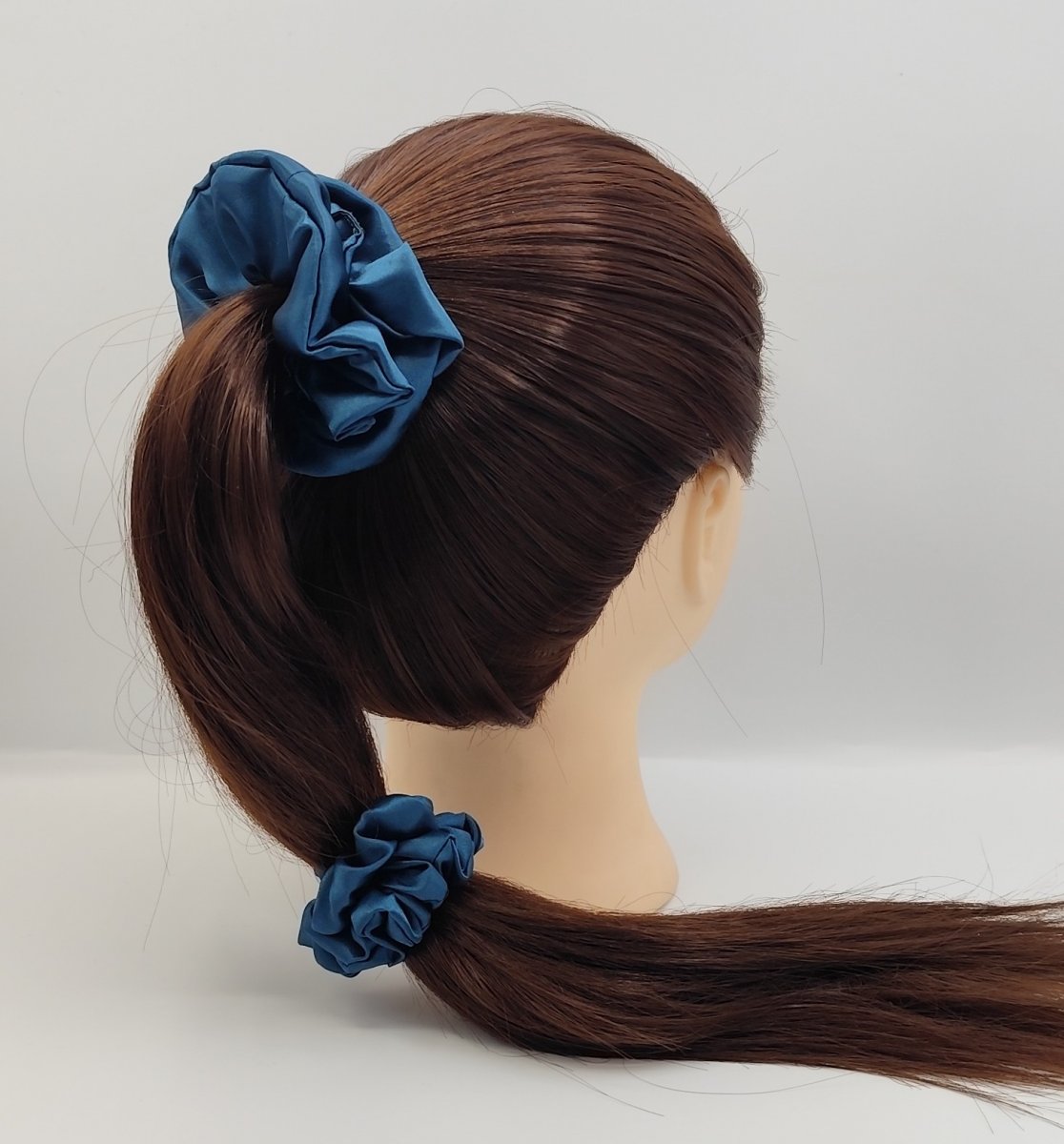 3x saténovou scrunchie gumičku velikost L-klasik - v klidovém stavu průměr 12 cm - šířka látky 4 cm, uvnitř s úzkou a pružnou gumou.