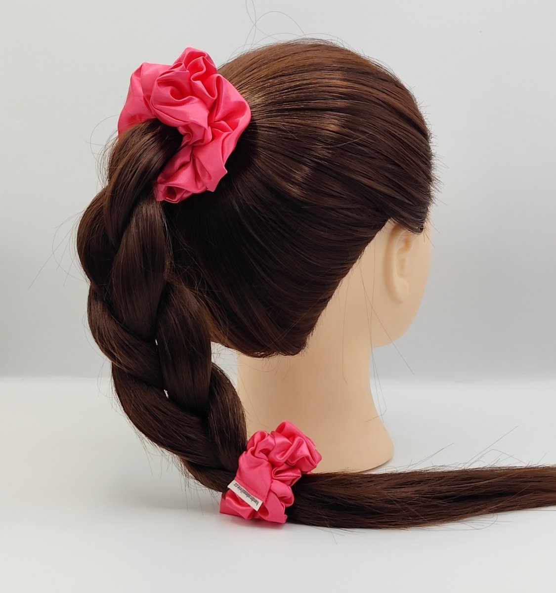 3x saténovou scrunchie gumičku velikost L-klasik - v klidovém stavu průměr 12 cm - šířka látky 4 cm, uvnitř s úzkou a pružnou gumou.