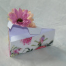 Elegantní papírová skládací krabička (vlastní návrh) tvar zákusek, která je ozdobena jemnou květinovou dekorací. Krabička je zdobena ubrouskovu technikou, vhodná na drobné dárky a sladkosti.