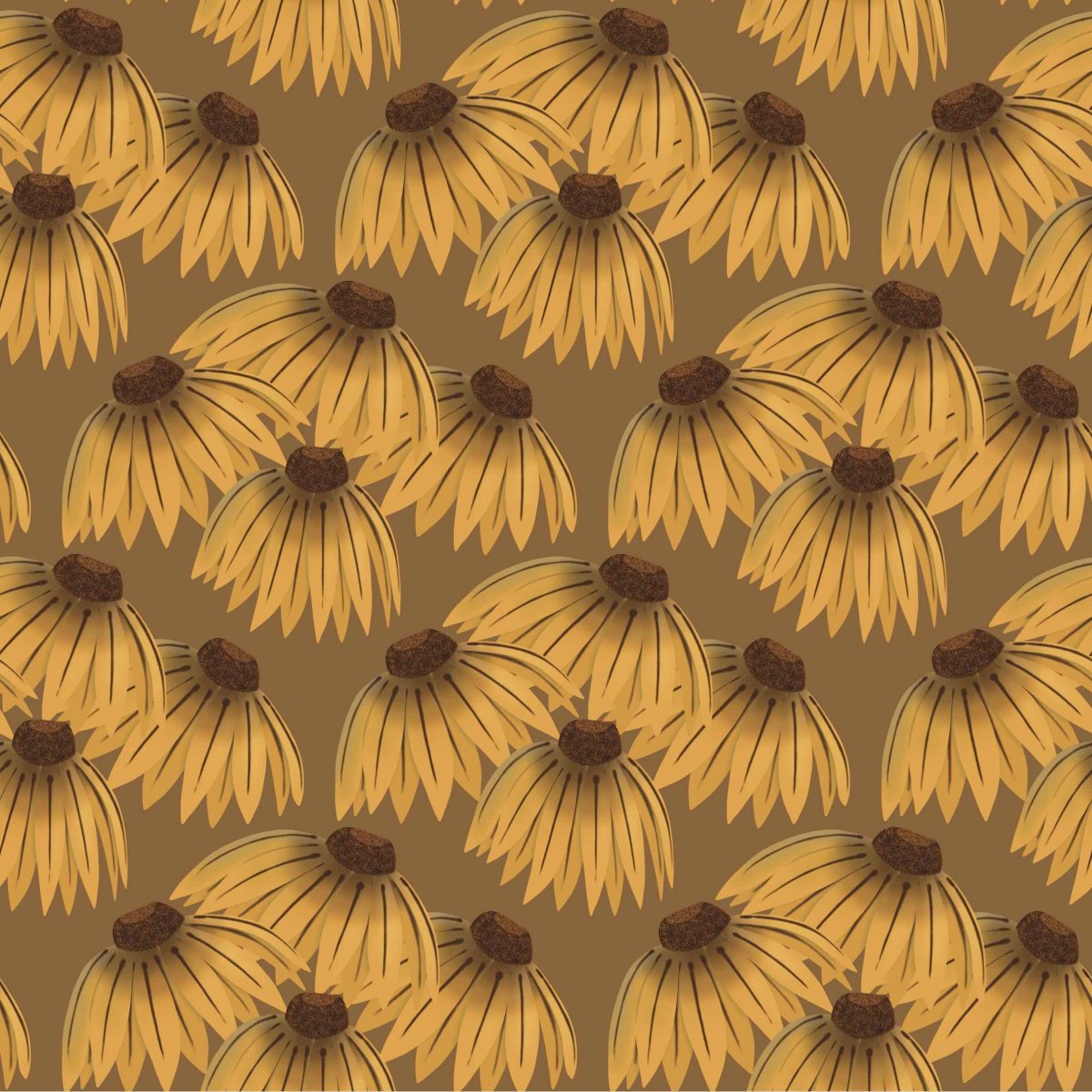 Papírová darovací ručně skládaná obálka s potiskem autorskou grafikou se žlutými květy třapatky na hnědém pozadí. Obálka z bílého papíru gramáže 160 g/m2 s inkoustovým potiskem.