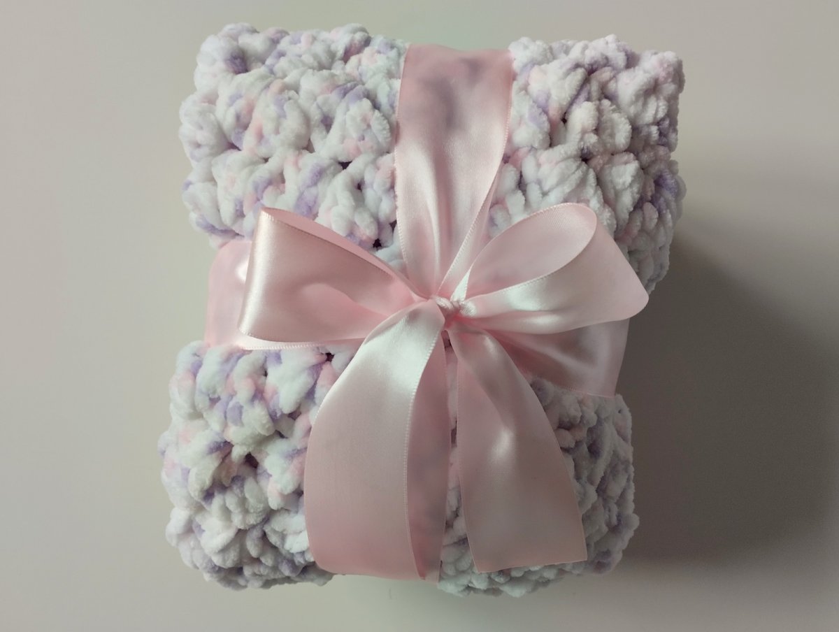 Háčkovaná deka z měkké a teplé příze Dolphin baby color, která má atest pro děti od 0-3let, deka má rozměr 83x65cm, oblemovaná, tedy lépe drží tvar se štítkem Handmade. Hodí se do kočárku, postýlky, vajíčka. Je měkoučká a teplounká a vaše miminko se v ní bude cítit jako v bavlnce:-) Barva je bílá se světle růžovým a světle fialovým melírem