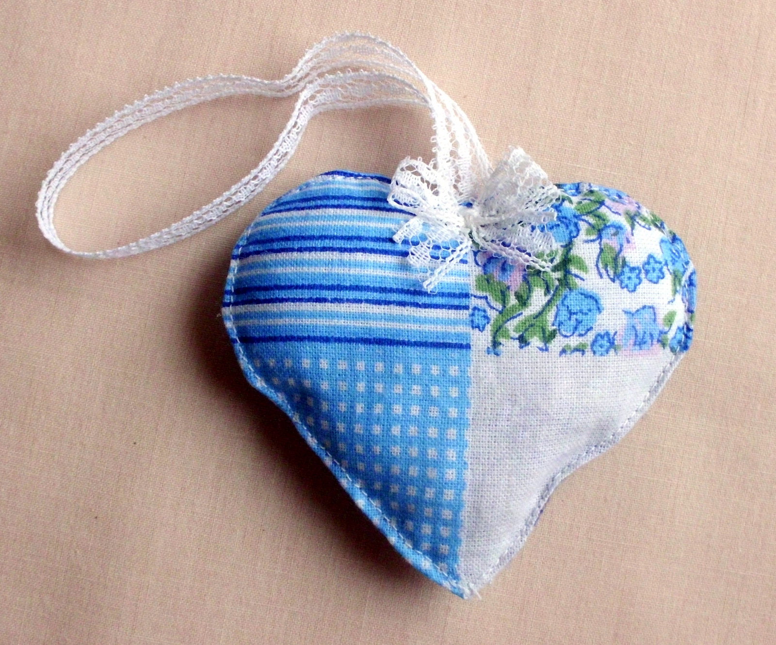 Bavlněná dekorační srdíčka zdobená krajkou.