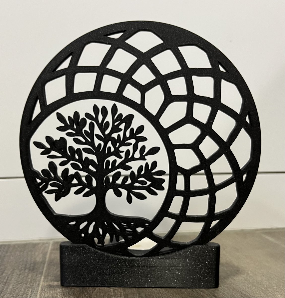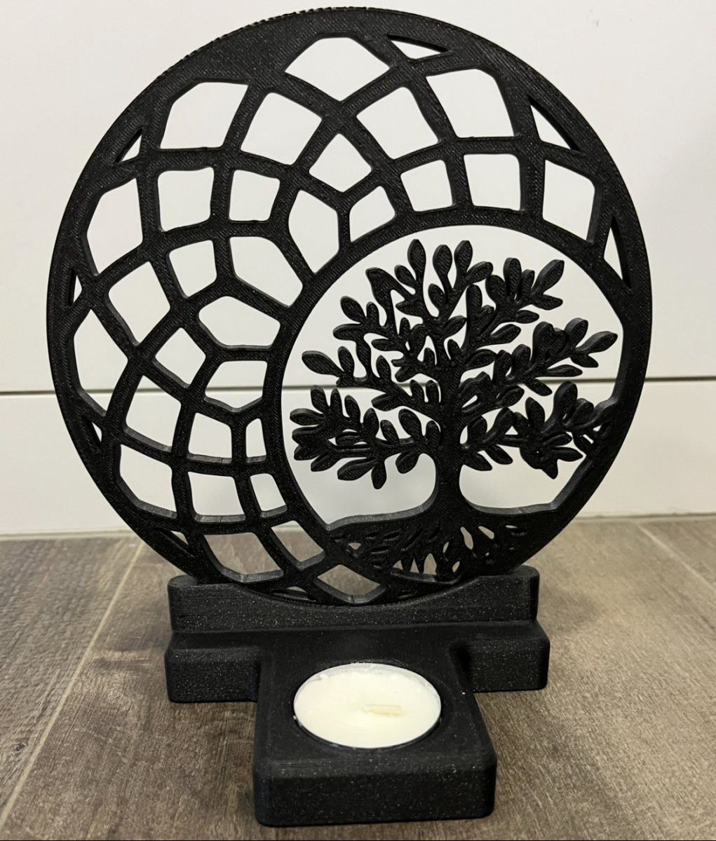 Dekorační svícen ve tvaru stromu života. Strom života představuje symbol zrození, životní síly i vitality. Materiál PLA (biologicky odbouratelný). Rozměr: průměr stromu je 175mm.