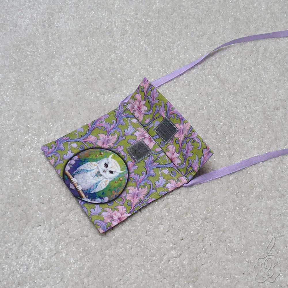 Jednoduchá taštička s klopnou na suchý zip. Dá se nosit na krk nebo přes rameno.
