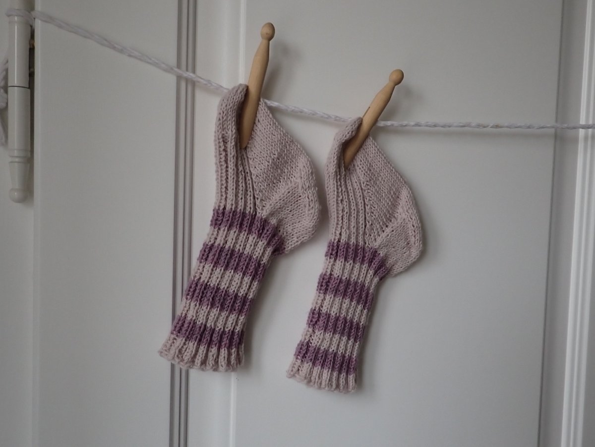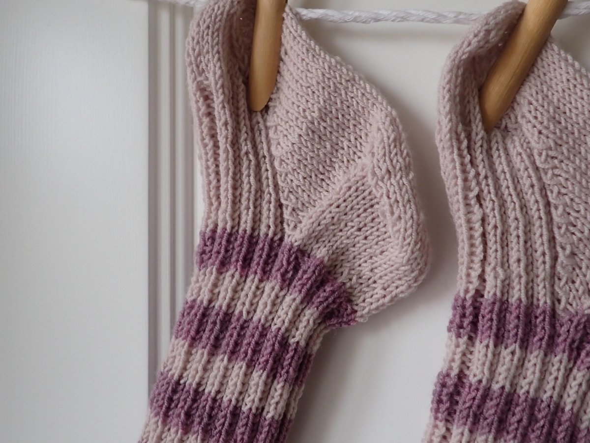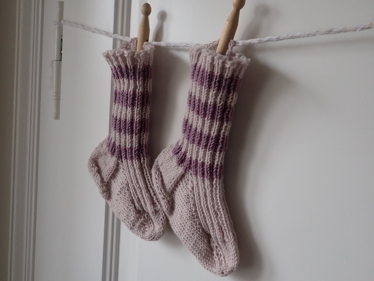 Dětské bezešvé ponožky pletené na 5 jehlicích dostatečně vysoké, aby nožka byla v teple.