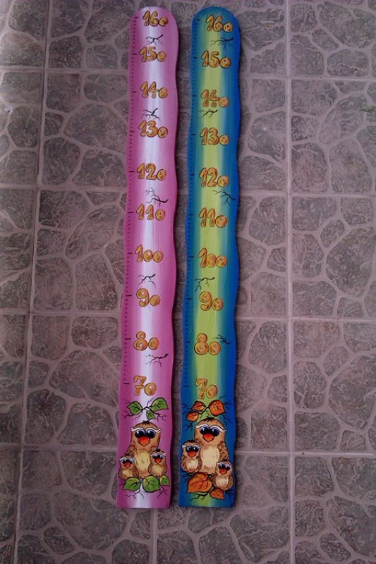 Originální dětský metr (v-120,š-12,tl-1,8cm dřevo),ručně vyřezávaný a malovaný,každý kus je originál,malováno barvou vhodnou na dětské hračky,přelakováno.Možnost různých motivů a barev.
