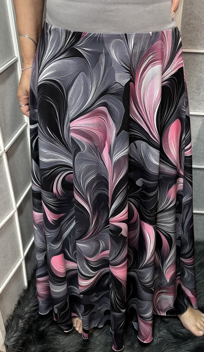 Dlouhá půlkolová sukně - šedorůžové vlnění