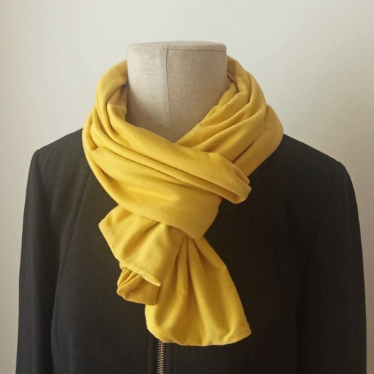 Dlouhá podzimní/zimní úpletová jednobarevná šála v hořčicovém odstínu , která vás zahřeje a oživí váš outfit....