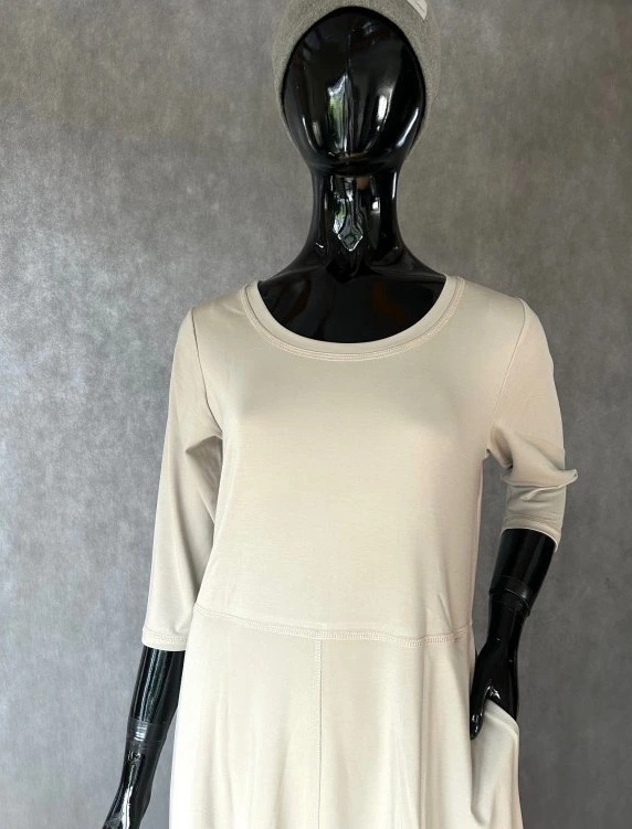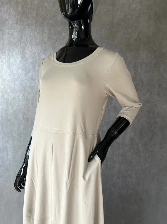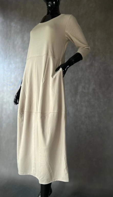 Naprosto pohodlné šaty pro běžné, ale i slavnostnější nošení, tentokrát jsme zvolili materiál Punto di Roma, který je neuvěřitelně splývavý, trochu lesklý, v módní barvě s 3/4 rukávem. Vřele doporučujeme, máme vyzkoušeno, že i nějaké to kilo se v nich ztratí.