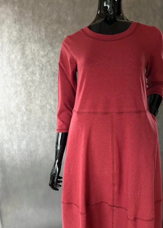 Naprosto pohodlné šaty pro běžné nošení z úpletu, módní barvě burgundi s 3/4 rukávem. Vřele doporučujeme, máme vyzkoušeno, že i nějaké to kilo se v nich ztratí.