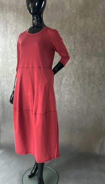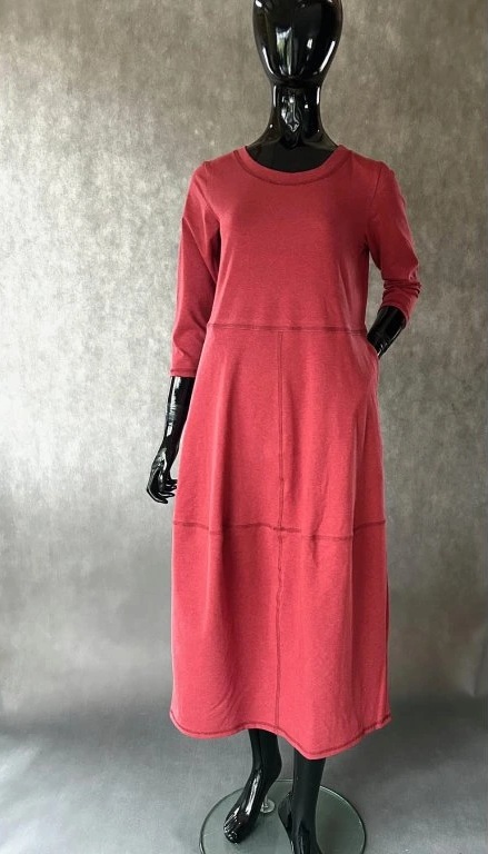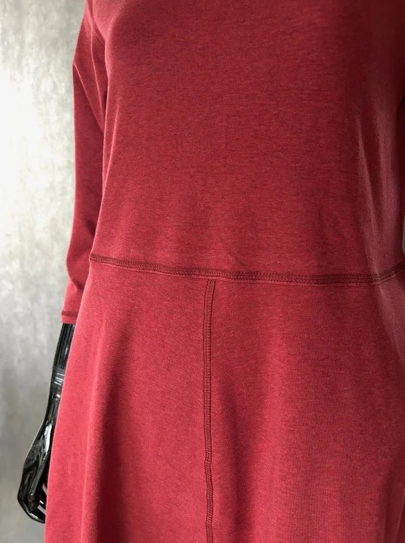 Naprosto pohodlné šaty pro běžné nošení z úpletu, módní barvě burgundi s 3/4 rukávem. Vřele doporučujeme, máme vyzkoušeno, že i nějaké to kilo se v nich ztratí.