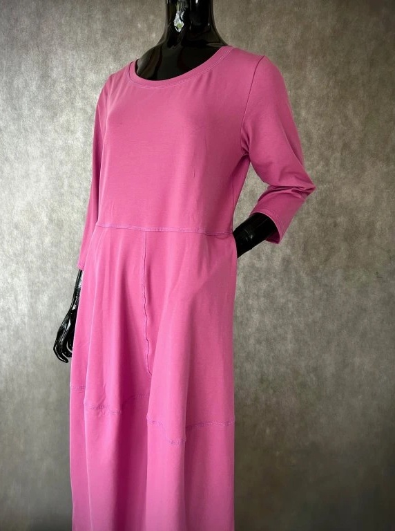 Naprosto pohodlné šaty pro běžné nošení z úpletu, v módní barvě s 3/4 rukávem. Vřele doporučujeme, máme vyzkoušeno, že i nějaké to kilo se v nich ztratí.