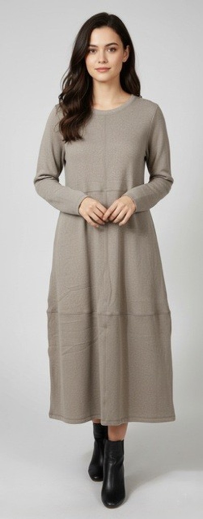 Tyto šaty v elegantním karamelovém odstínu spojují pohodlí a nadčasový styl. Měkký, pružný úplet příjemně zahalí postavu a zajišťuje komfort po celý den. Minimalistický střih s dlouhým rukávem a jemně rozšířenou sukní lichotí siluetě a hodí se jak do práce, tak na volný čas.