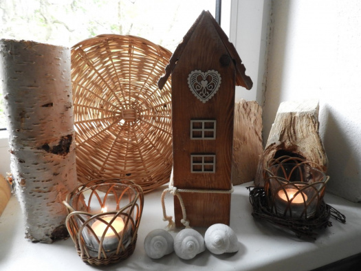 Velký domeček z masívního dřeva v rustikálním stylu je krásná dekorace do bytu, chaty či chalupy. Je použitelné oboustranně, takže máte 2v1. Jedna strana zdobena okýnky a ♥ a druhá rustikální s listem (lze vyměnit dle fantazie za peříčka a podobně) . Mořeno, aby vynikla přírodní kresba dřeva.