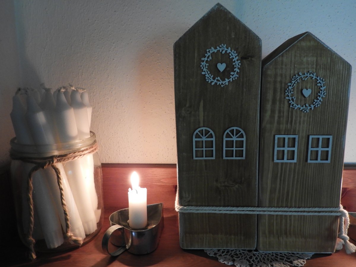 Velké domečky z masívního dřeva v rustikálním stylu jsou krásná dekorace do bytu, chaty či chalupy. Jsou použitelné oboustranně, takže máte 2v1. Jedna strana zdobena okýnky a věnečkem a druhá rustikální se dvěma listy (lze vyměnit dle fantazie za peříčka a podobně) . Mořeno, aby vynikla přírodní kresba dřeva.