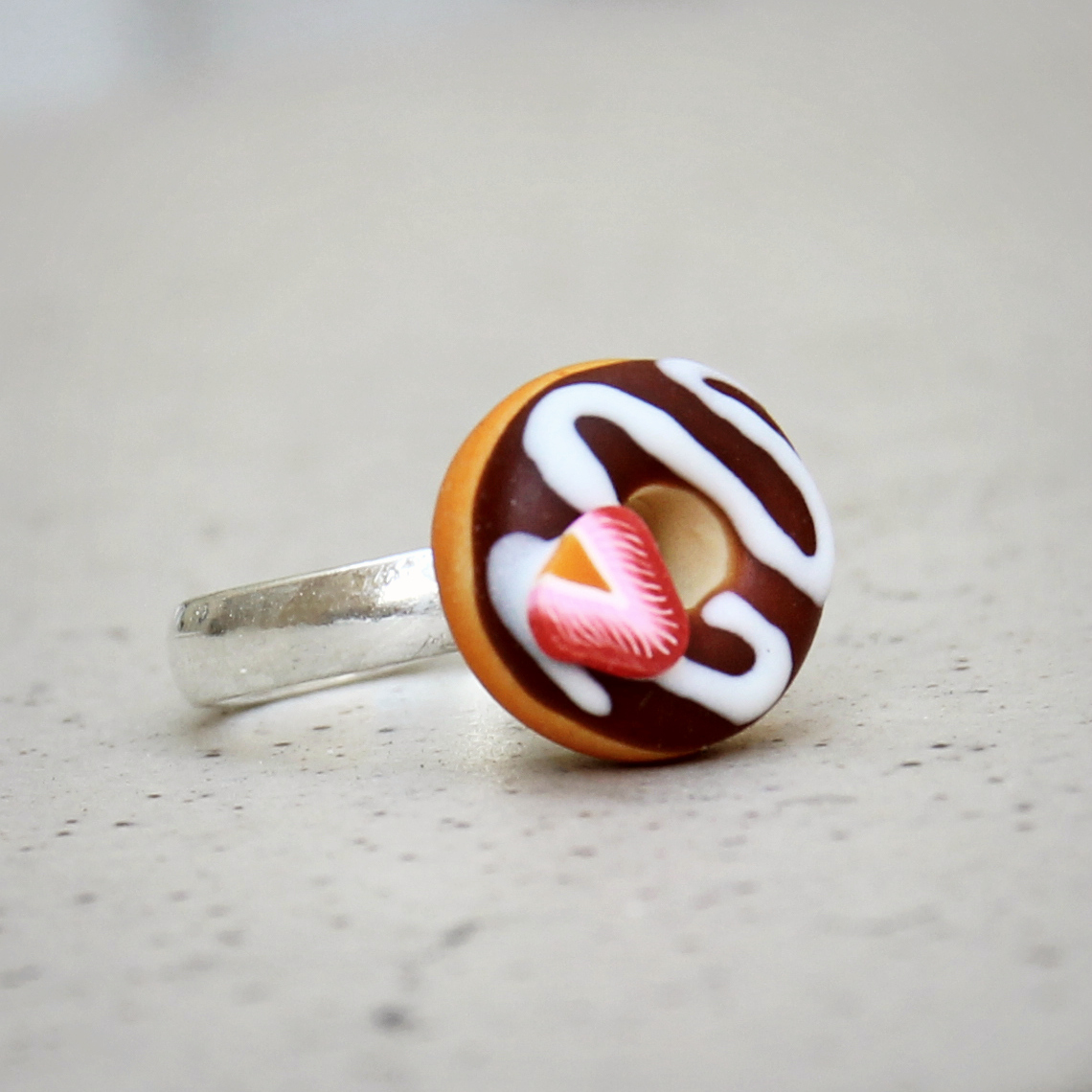 Prstýnek (dětská velikost, základní průměr 1,5cm, roztažitelný) s donutem z polymerové hmoty ( průměr cca 1,1cm).