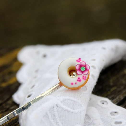 sponka z donutkem z polymerové hmoty (průměr cca 1,2cm).