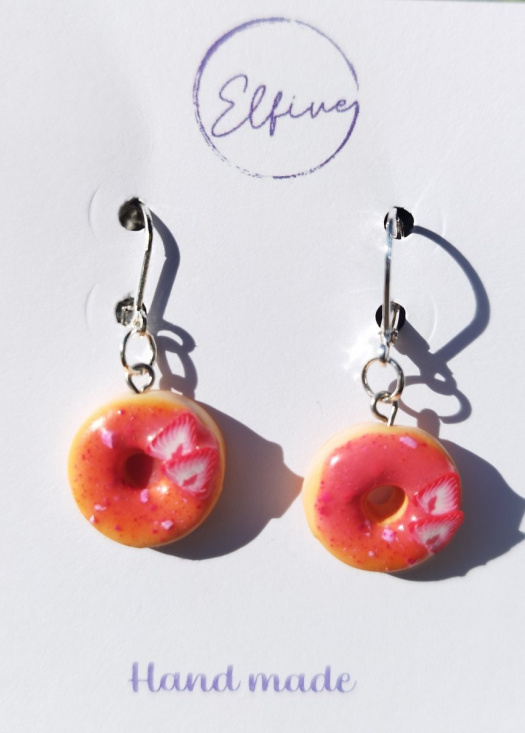 Donutek je ozdobený jahodovou polevou s plátky jahod.