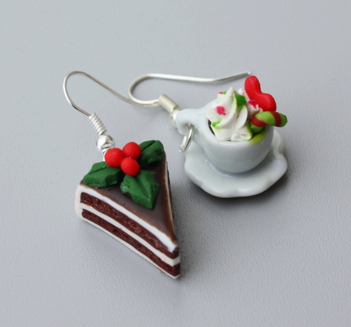ručně modelovaný šperk z polymerové hmoty, hrníček porcelánový plněný šlehačkou