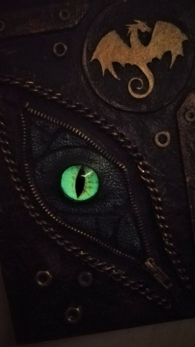 Velikost A5, 95 listů, linkovaný, ošetřený lakem, oko po nasvícení ve tmě září
