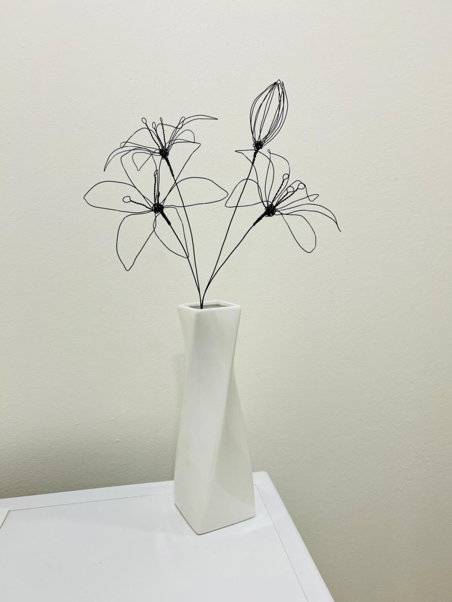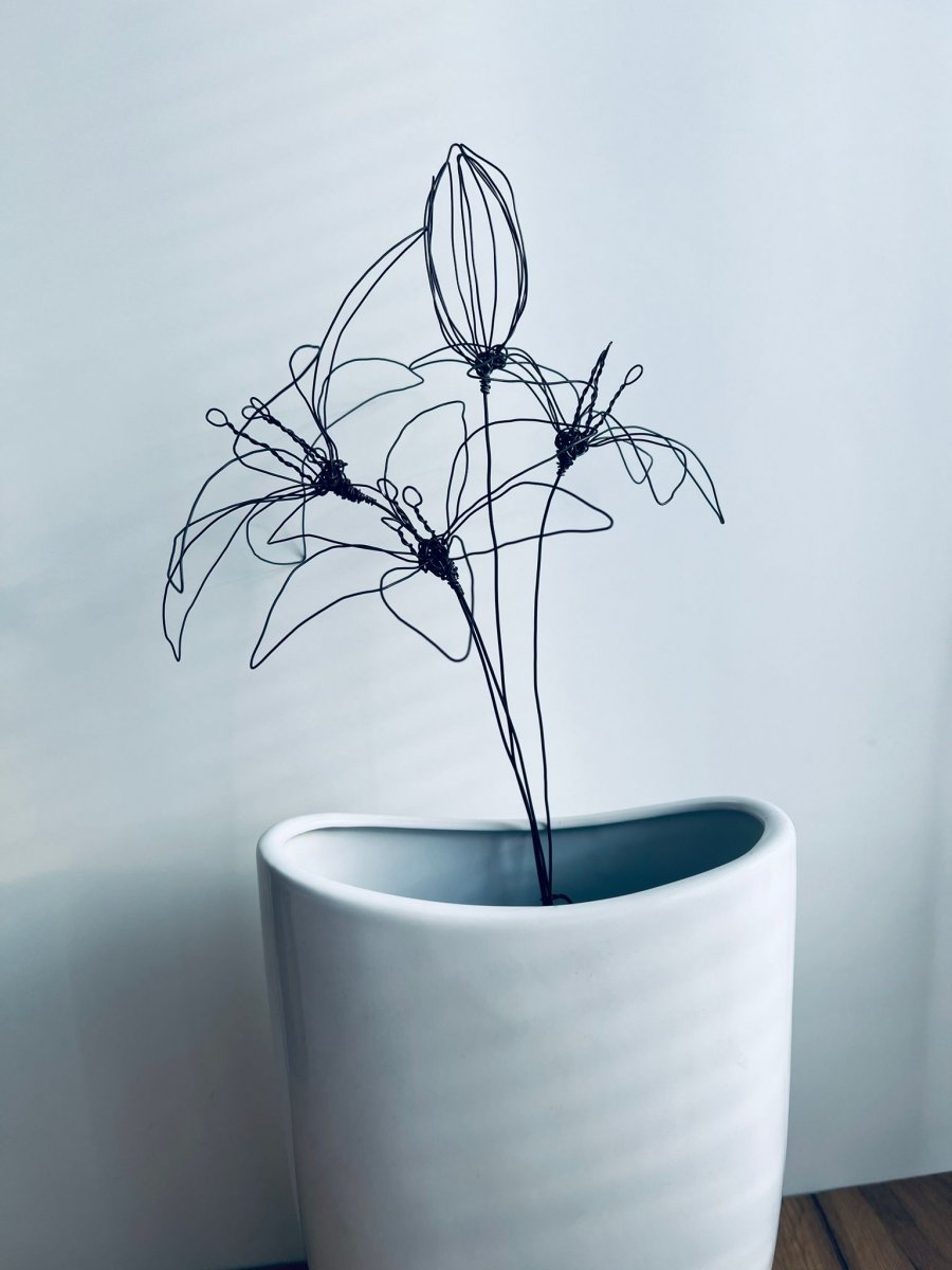 Elegantní a jedinečná lilie, ručně vytvořená z drátku, se stane ozdobou každého interiéru. Se svou výškou 40 cm působí jemně, ale zároveň nepřehlédnutelně. Povrch je ošetřen ochranným lakem proti korozi, takže si svůj šarm uchová po dlouhá léta.