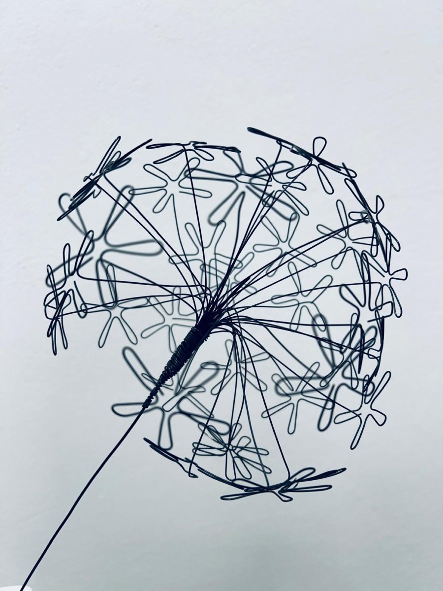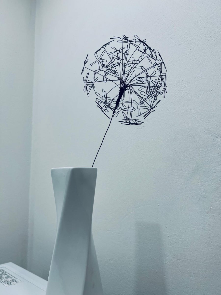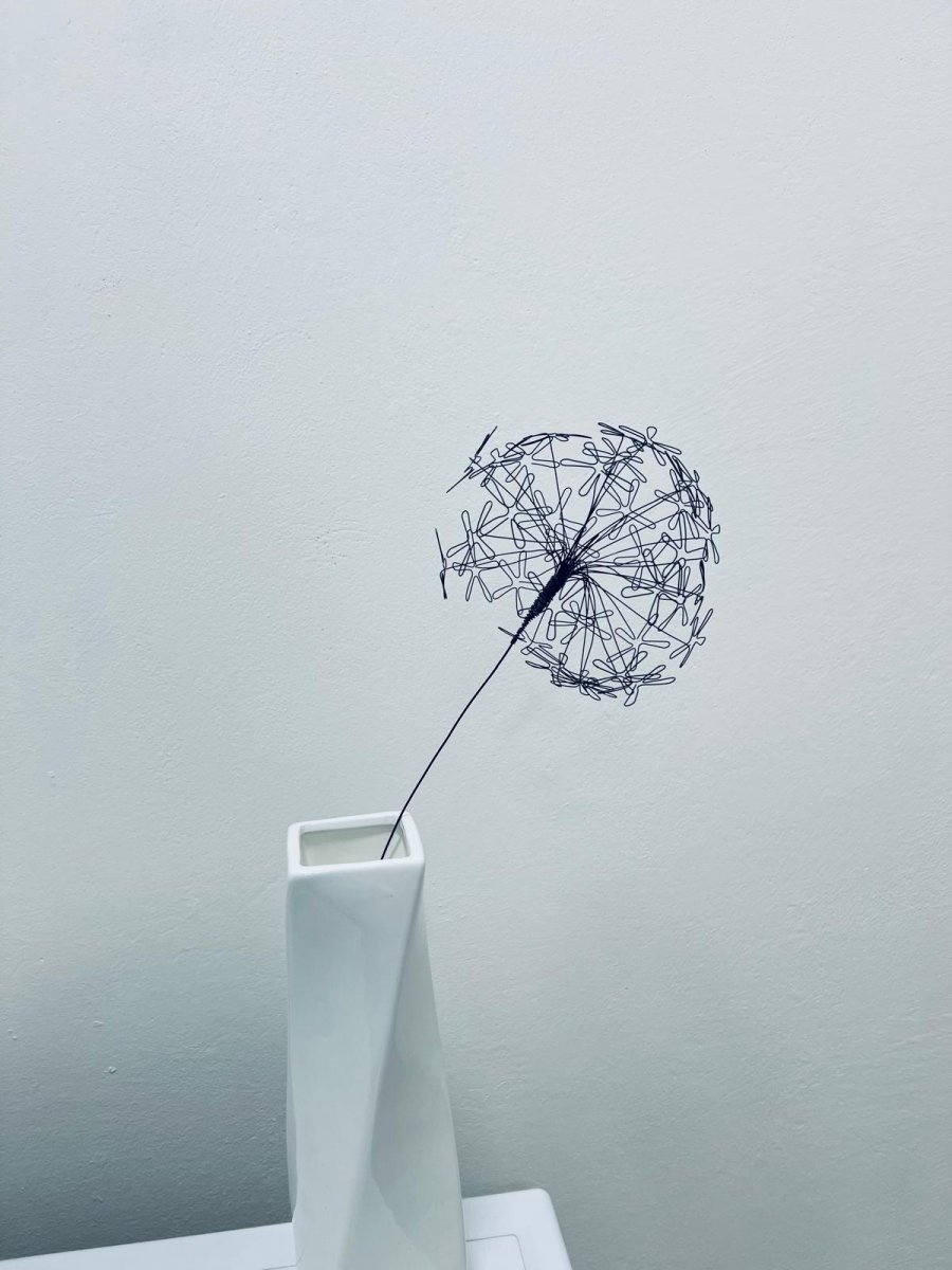 Ručně vyráběná květina z černého drátku. Vhodná jako dekorace do vázy. Výška cca 40 cm, průměr cca 17 cm.