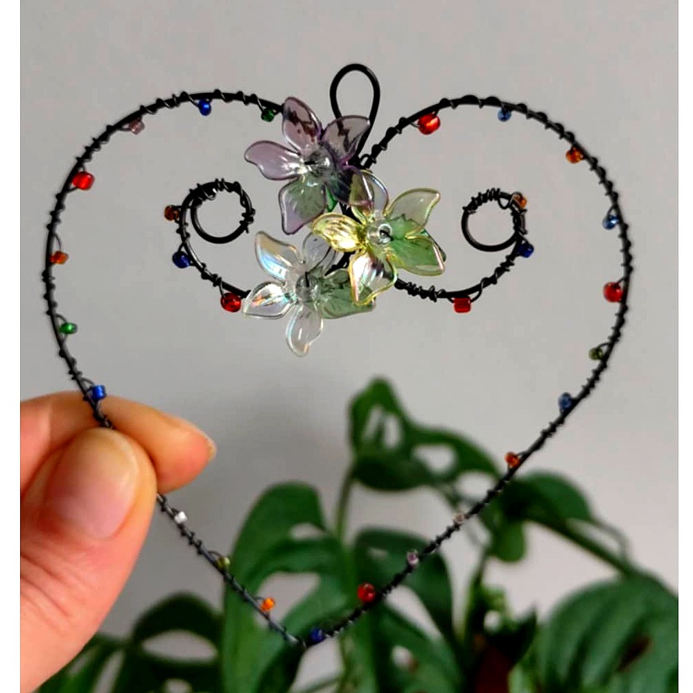 Drátované srdce s barevnými korálky, je vyrobené technikou drátování.
