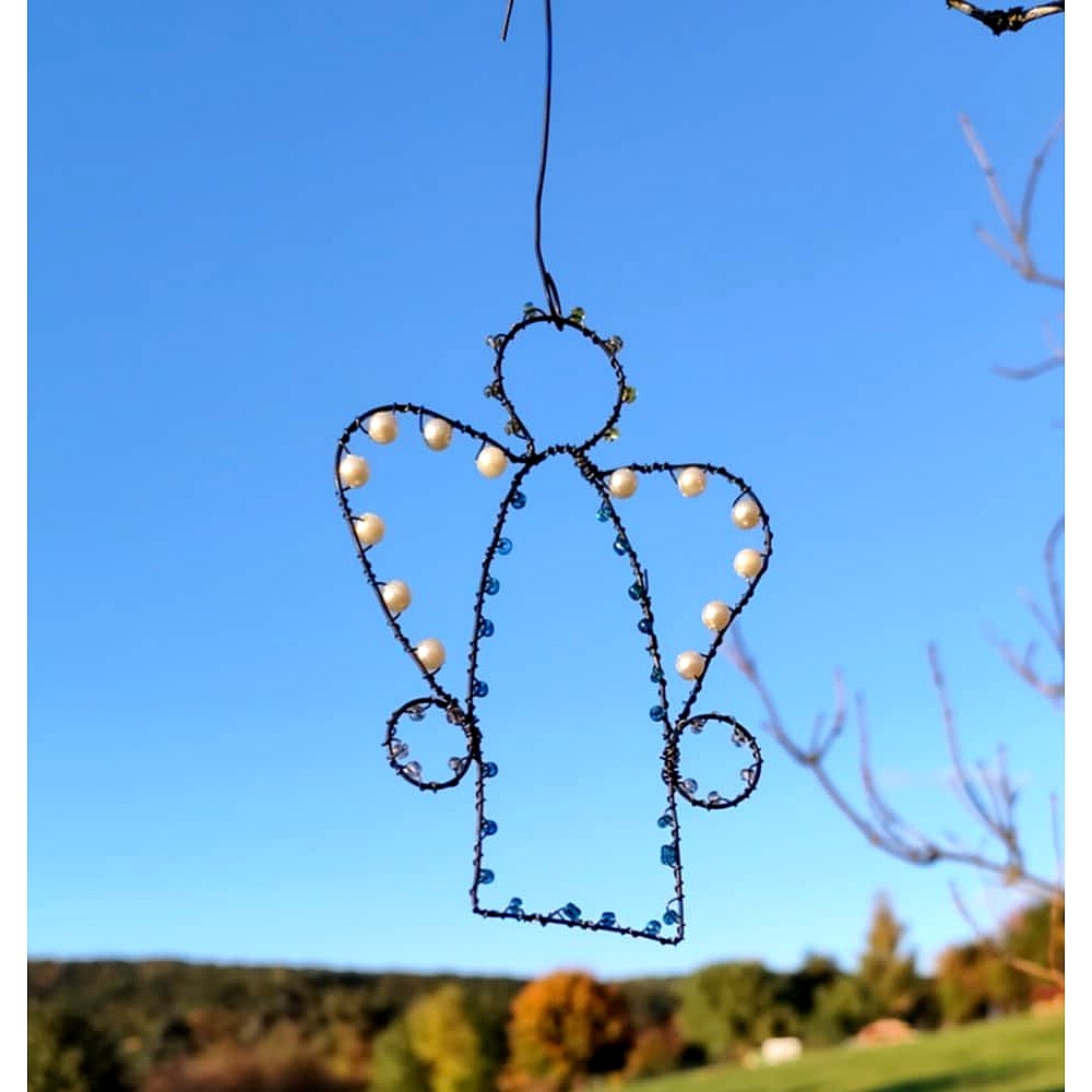 Drátovaný anděl s barevnými korálky, je vyrobený technikou drátování.